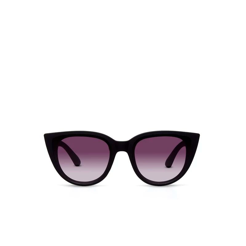 Occhiale da sole Silvia con lenti nere. Montatura soft touch, lenti più grandi e angoli più sollevati ne aumentano il fascino e il mistero. PULIZIA: Utilizzare un panno umido e un normale detergente neutro e asciugare con un panno morbido pulito. Evitare l’impiego di solventi.