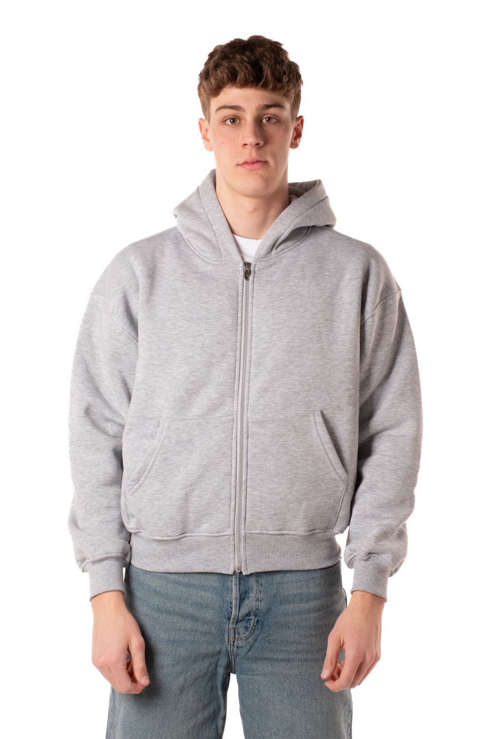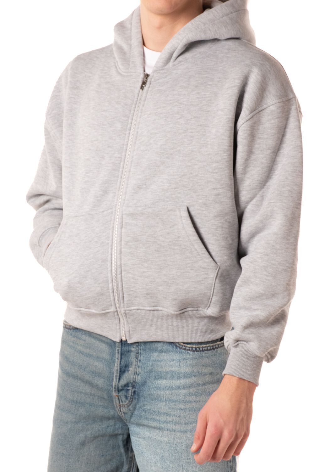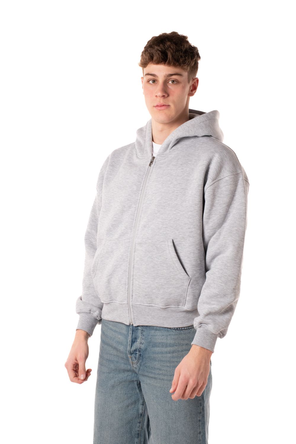 Felpa con cappuccio da uomo dal fit crop, con zip personalizzata, e interno felpato. Il modello è alto 1,84 cm e indossa la taglia L.