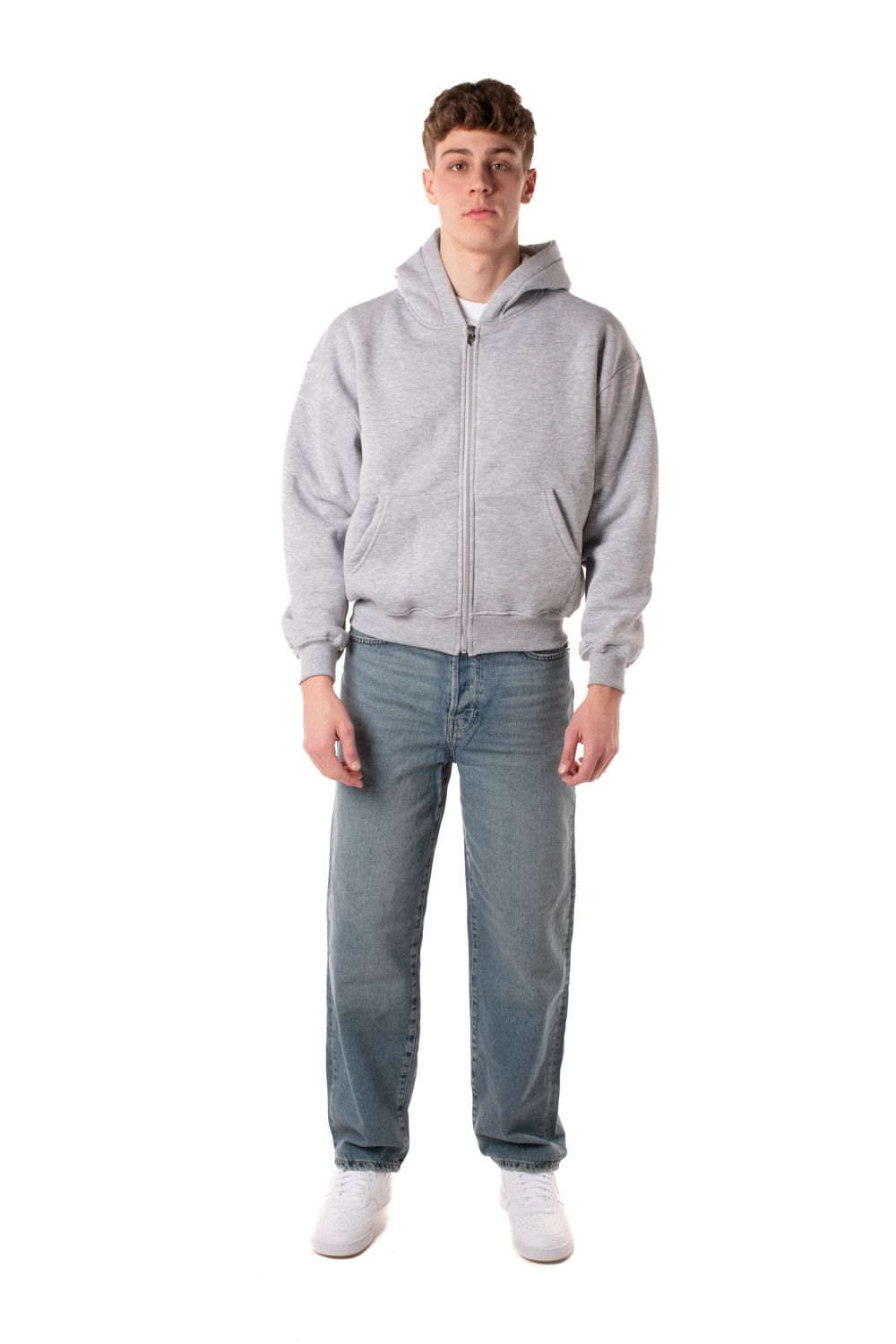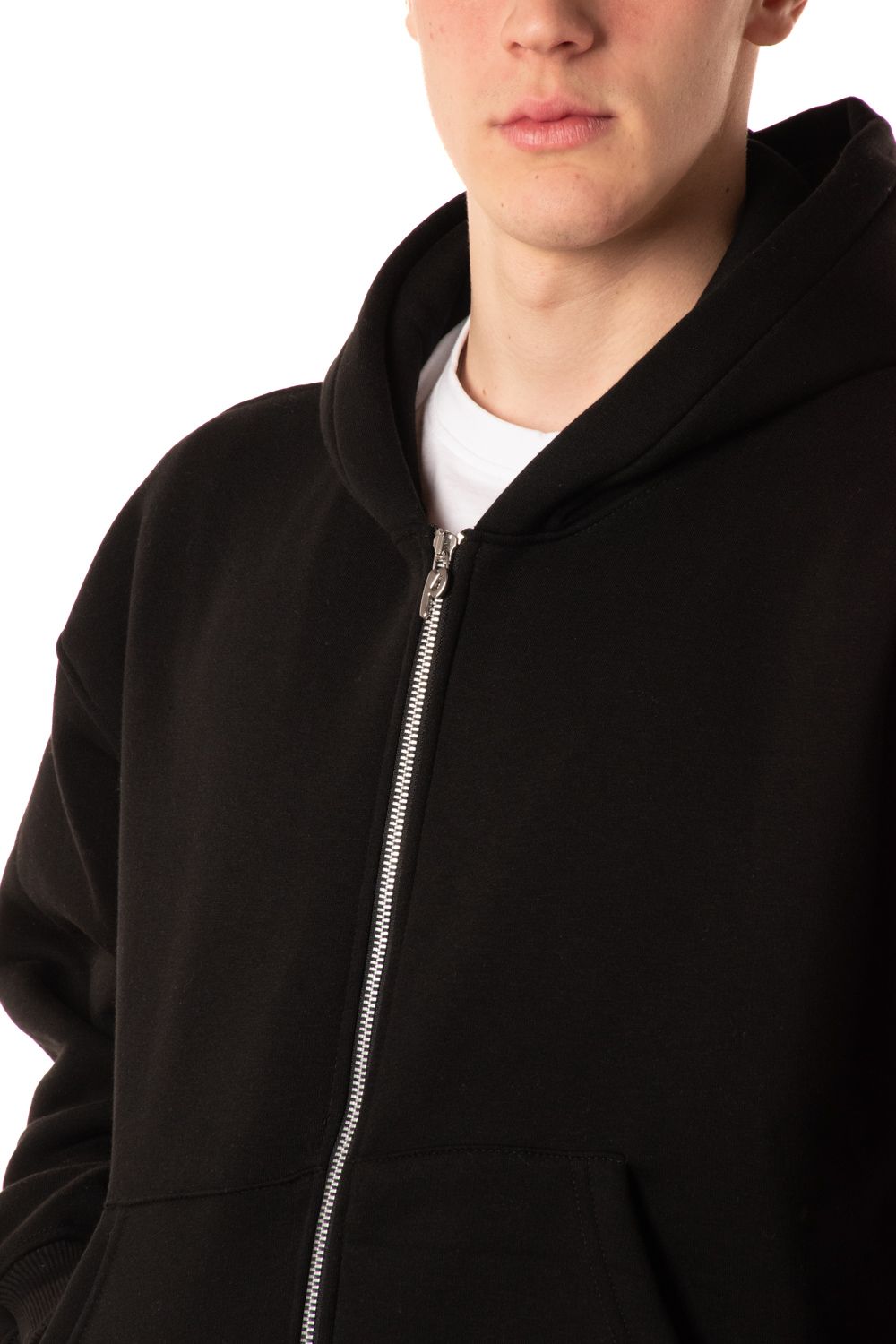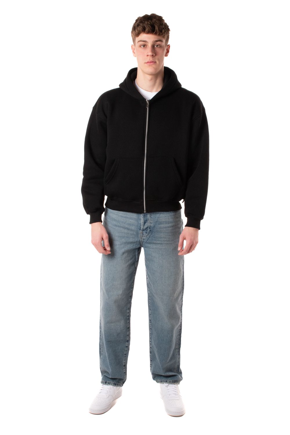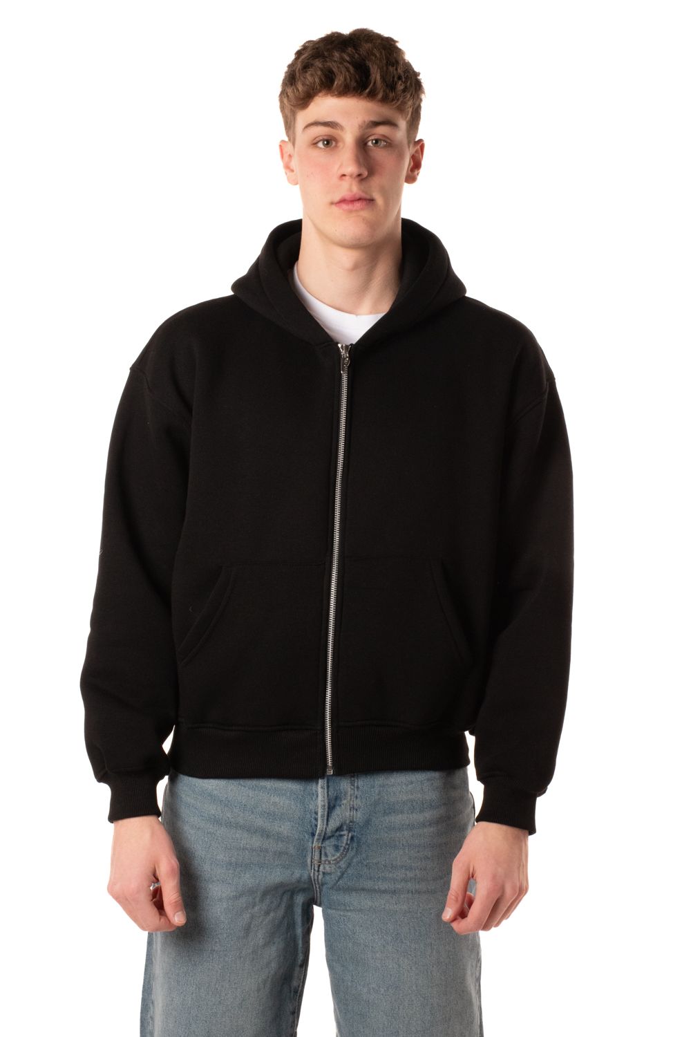 Felpa con cappuccio da uomo dal fit crop, con zip personalizzata, e interno felpato. Il modello è alto 1,84 cm e indossa la taglia L.