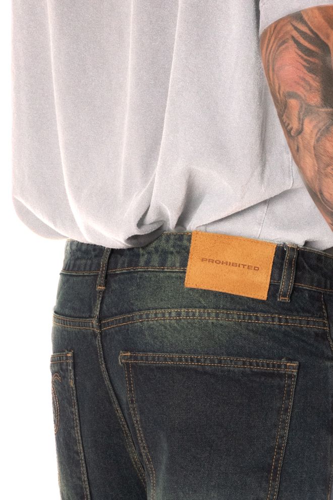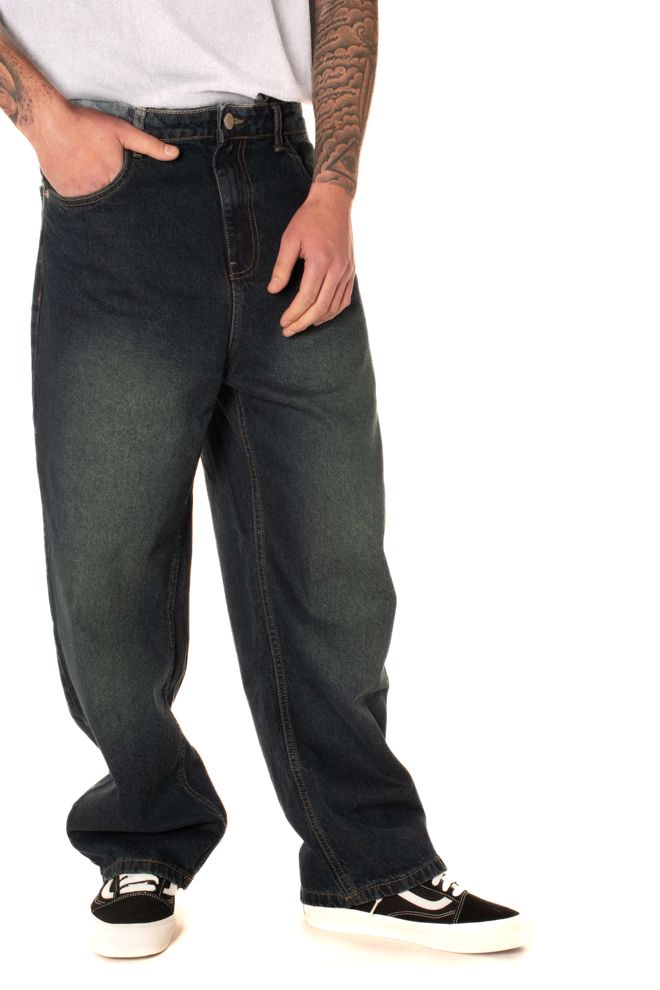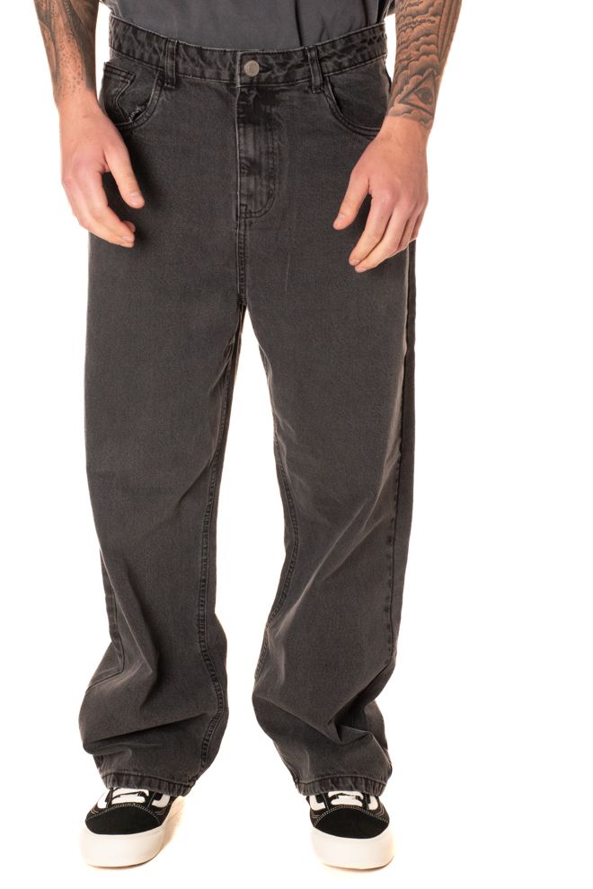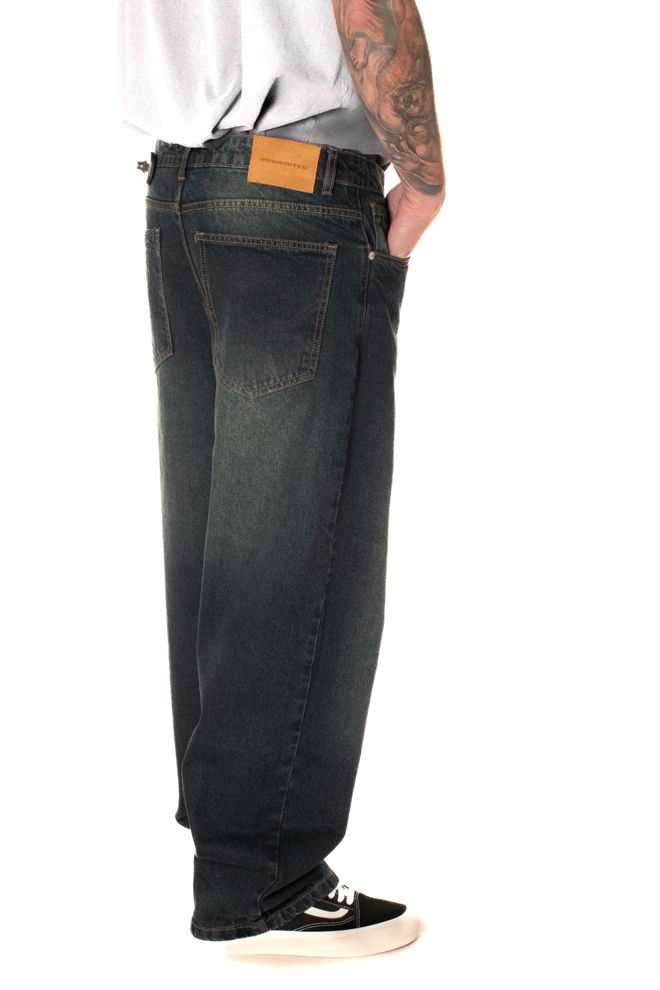 Jeans da uomo 5 tasche dal fit baggy. Gamba Straight. Il modello è alto 185 cm e indossa la taglia W32.