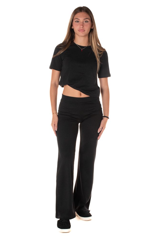 Leggins in da donna nero, Wide leg, slim fit. La modella è alta 170 cm e indossa la taglia S.