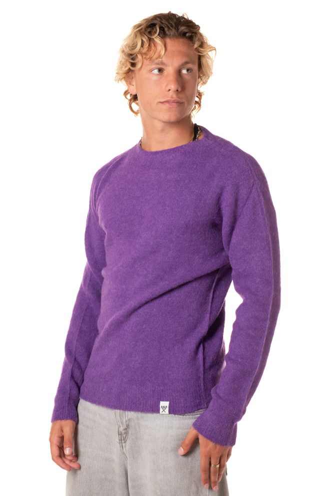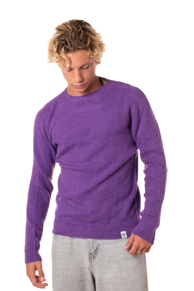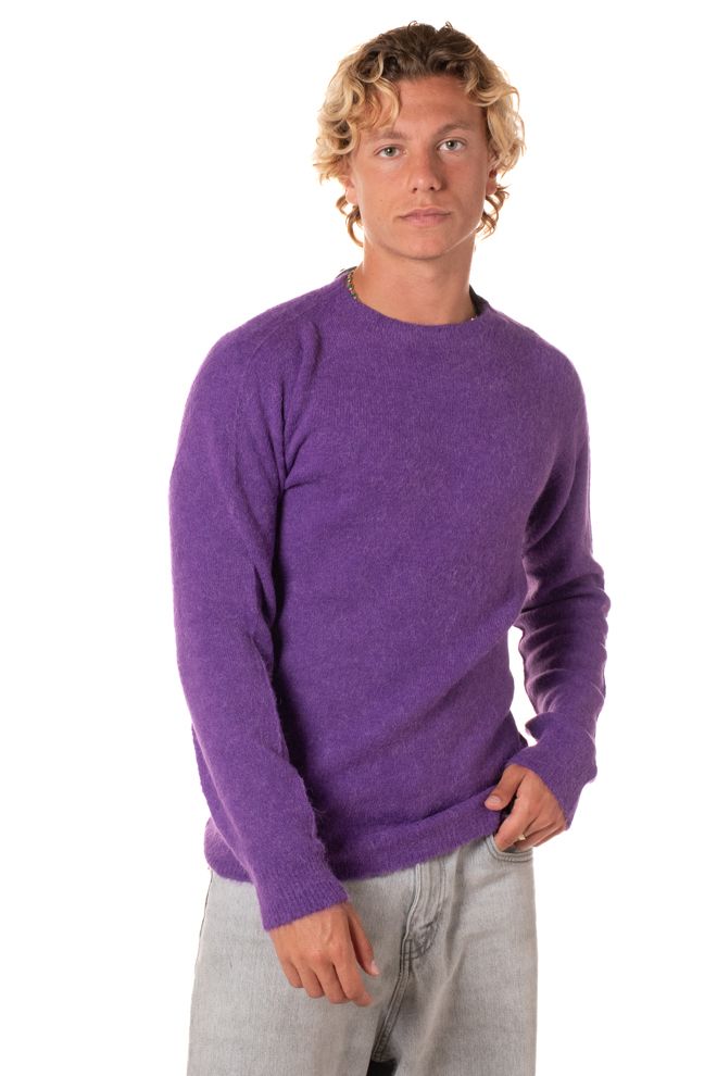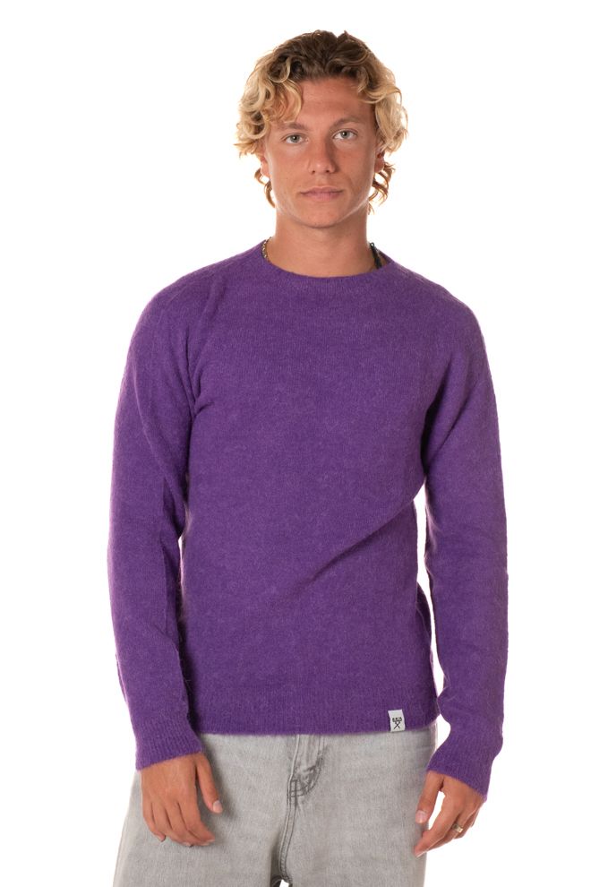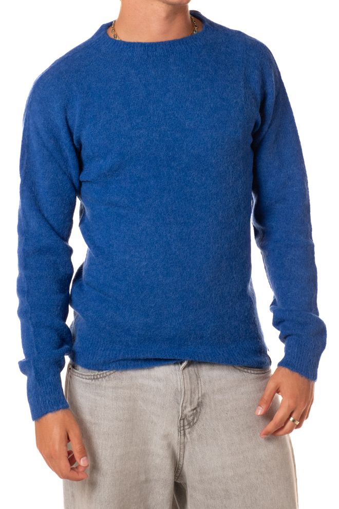 Maglione in lana basico da uomo. Slim Fit. Il modello è alto 185 cm e indossa la taglia L.