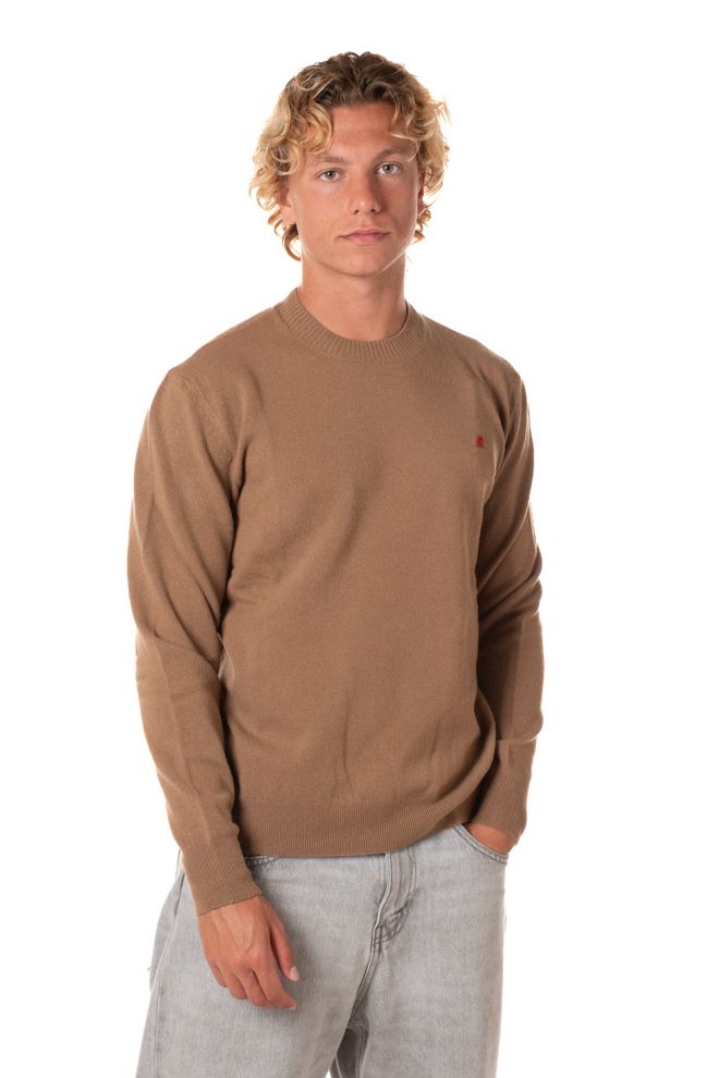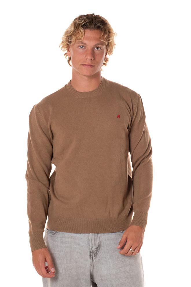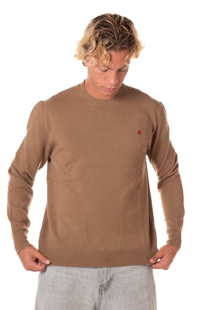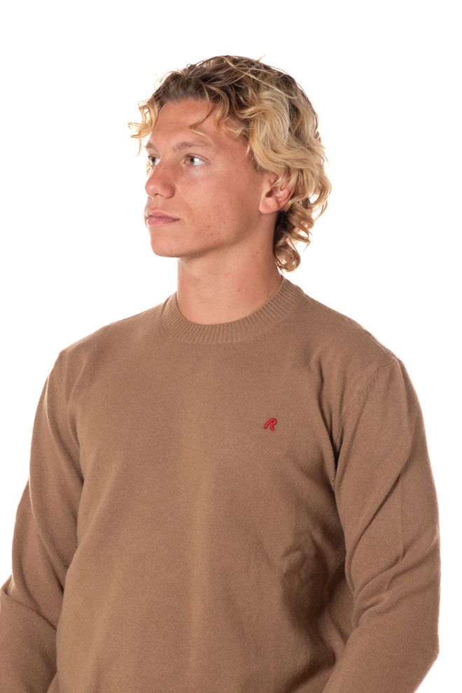 Maglione da uomo con logo "R" ricamato. Regular Fit. Il modello è alto 1,80 cm e indossa la taglia L.