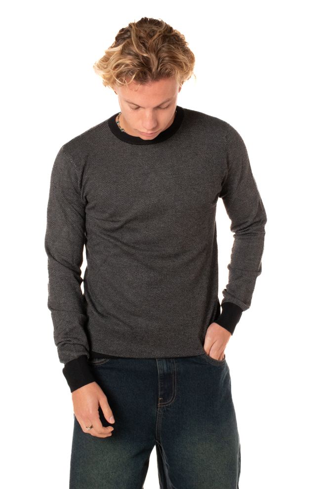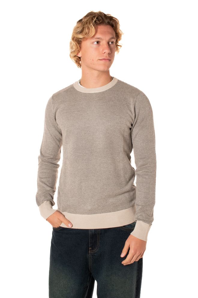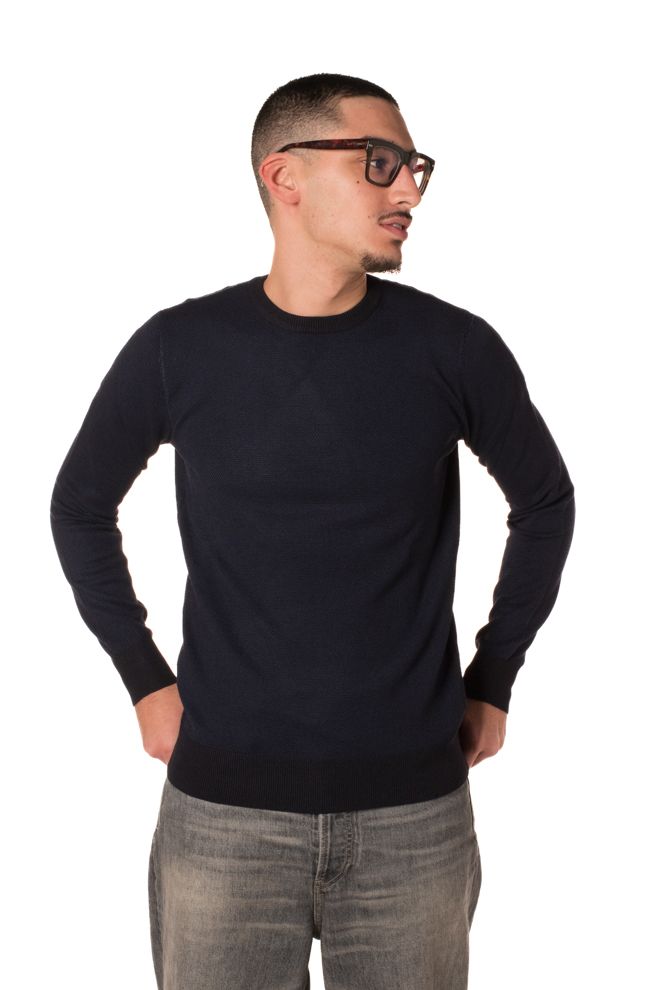 Pullover girocollo con lavorazione a coste sui bordi. Vestibilità slim .Il modello è alto 178cm e idnossa la taglia L.