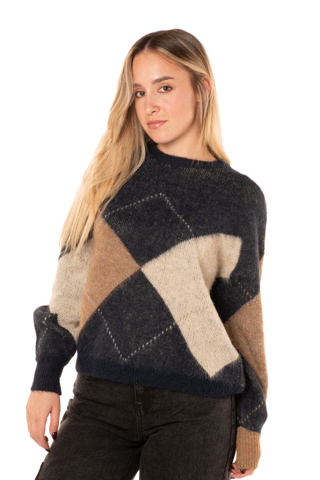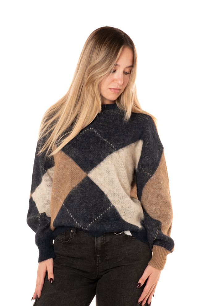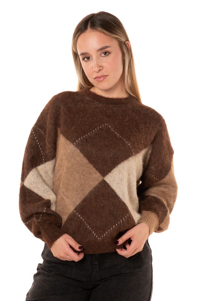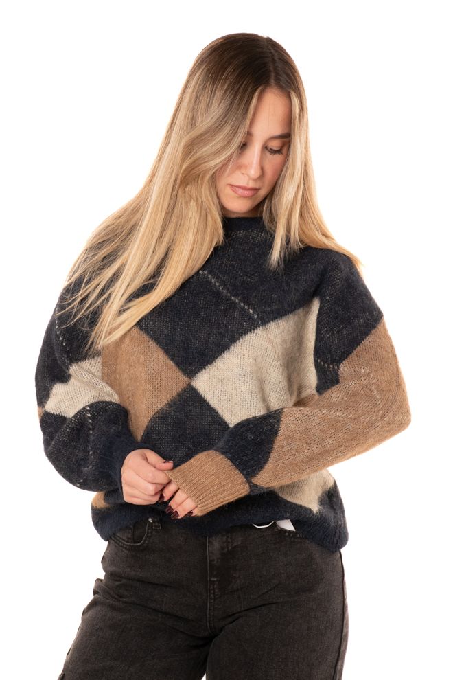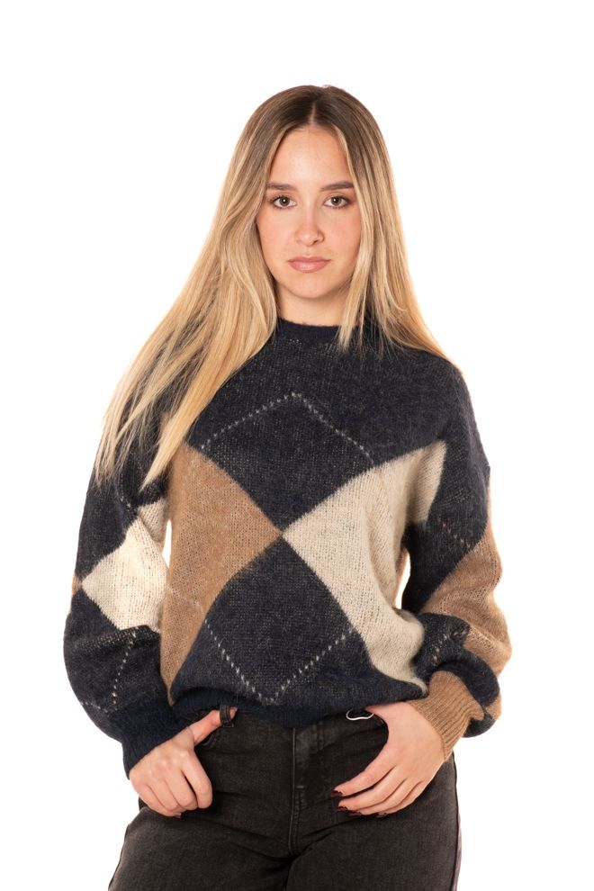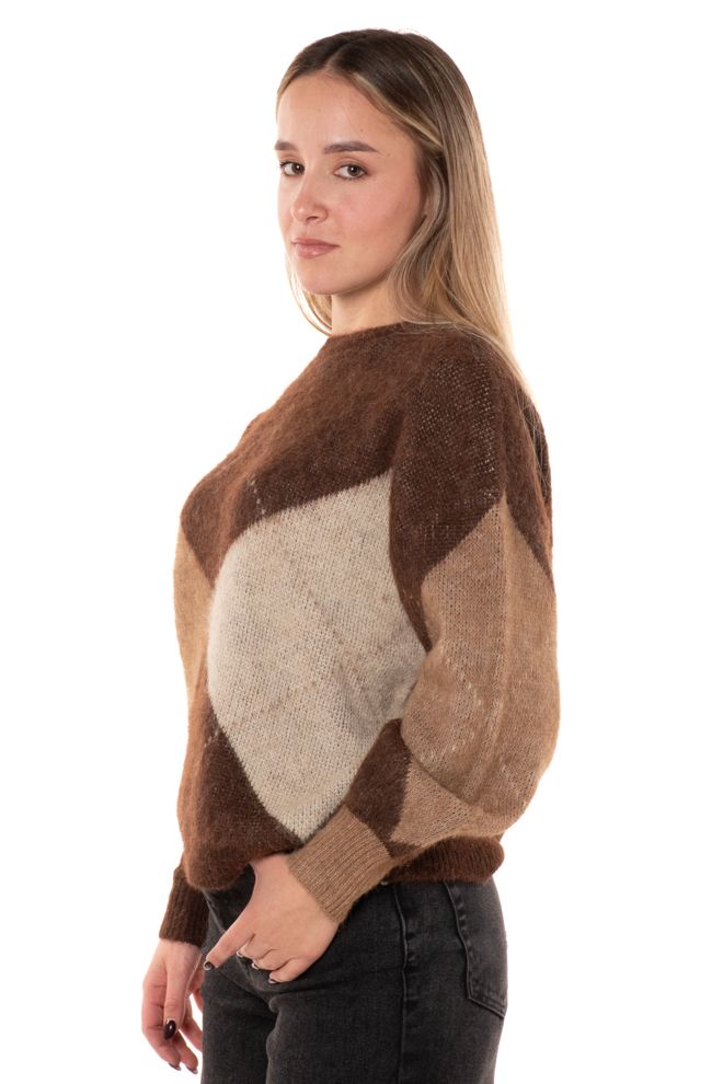 Pullover girocollo dal taglio relaxed con polsini a coste ai polsi e in vita. La modella è alta 1700 cm e indossa la taglia Xs.