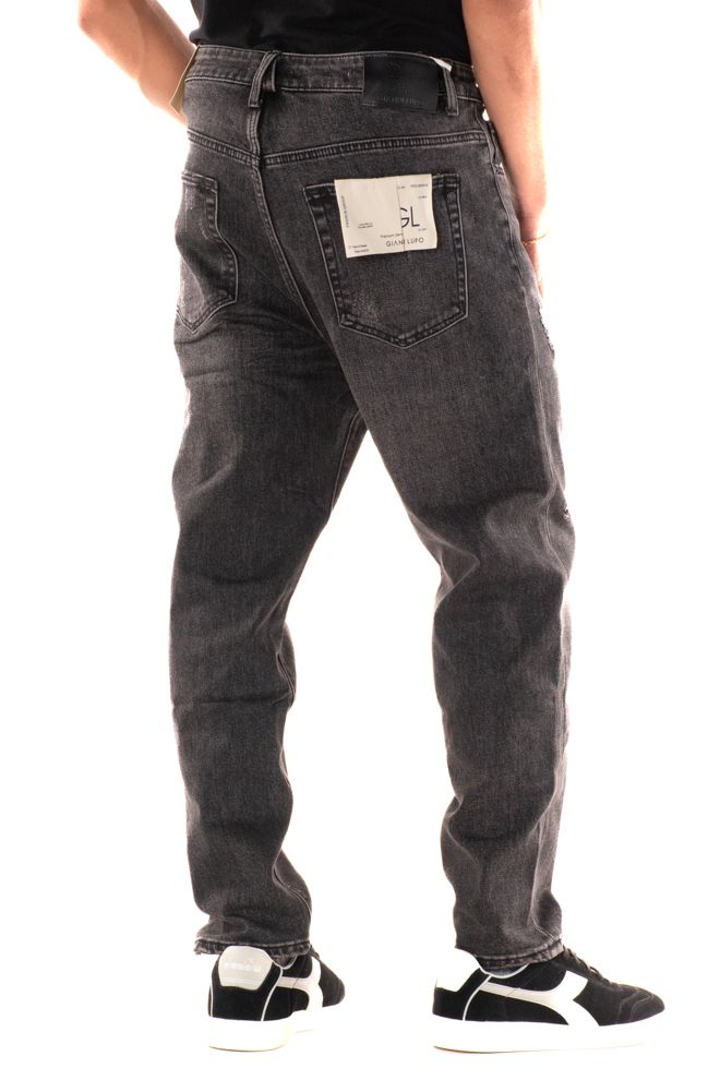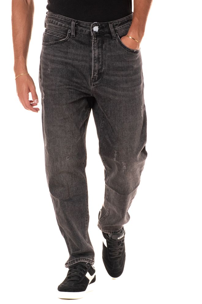 Jeans da uomo con fit dad, comodo sulla coscia che va a stringere sul fondo. 5 tasche. Il mdoello è alto 185 cm e indossa la taglia 48.