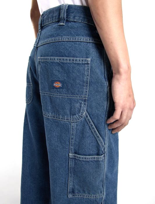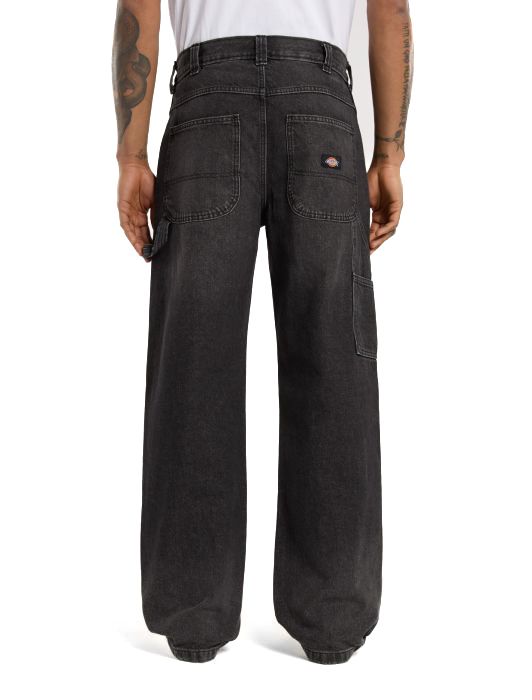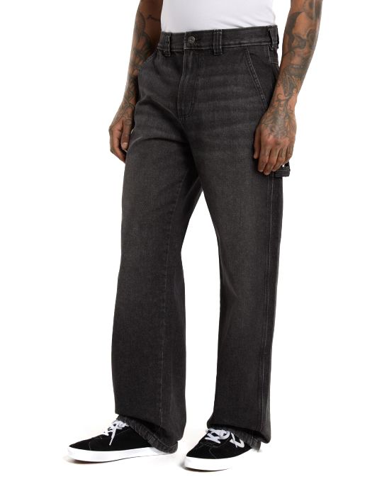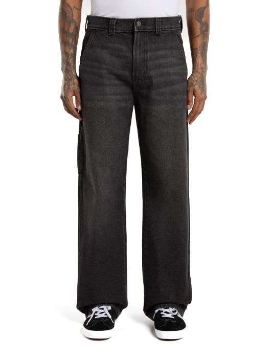 Jeans baggy stevensiville modello carpentiere, fit loose. 5 Tasche. Fondo over. Il modello è alto 185 cm e indossa la taglia W32.