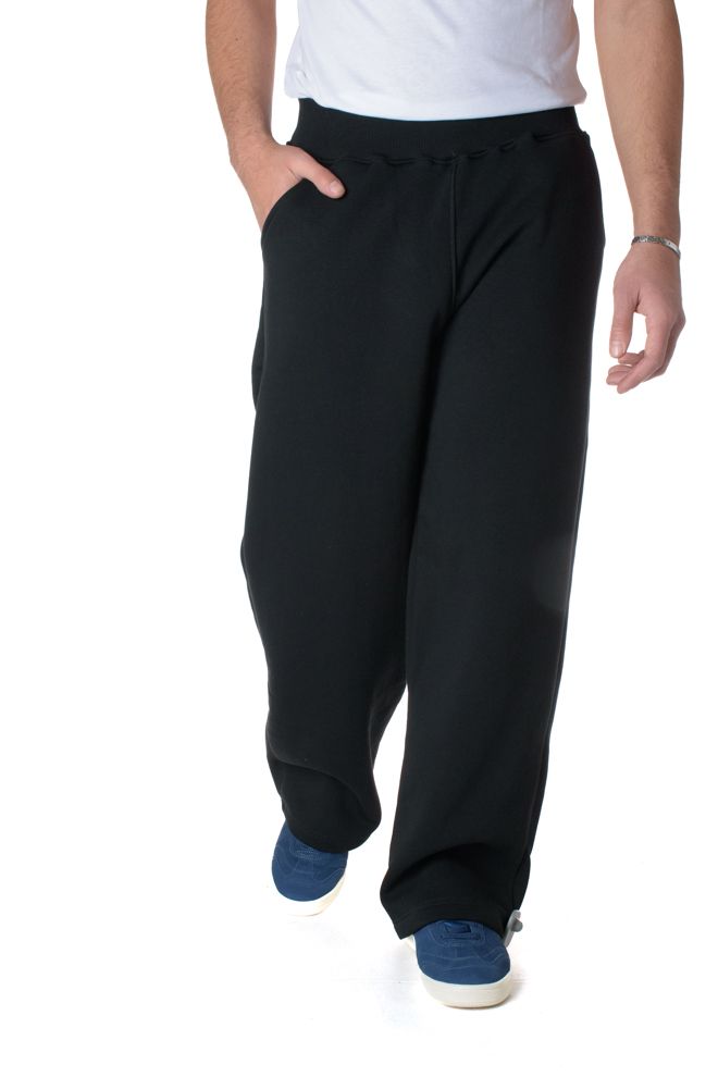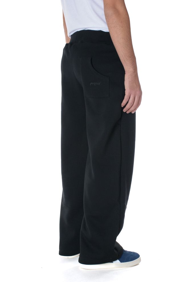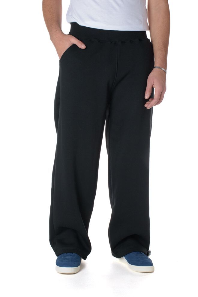 Jogger in cotone wide leg con interno felpato. Ricamo sulla tasca posteriore carpenter. Made in Italy. Il modello è alto 1,83 cm e indossa la taglia L.