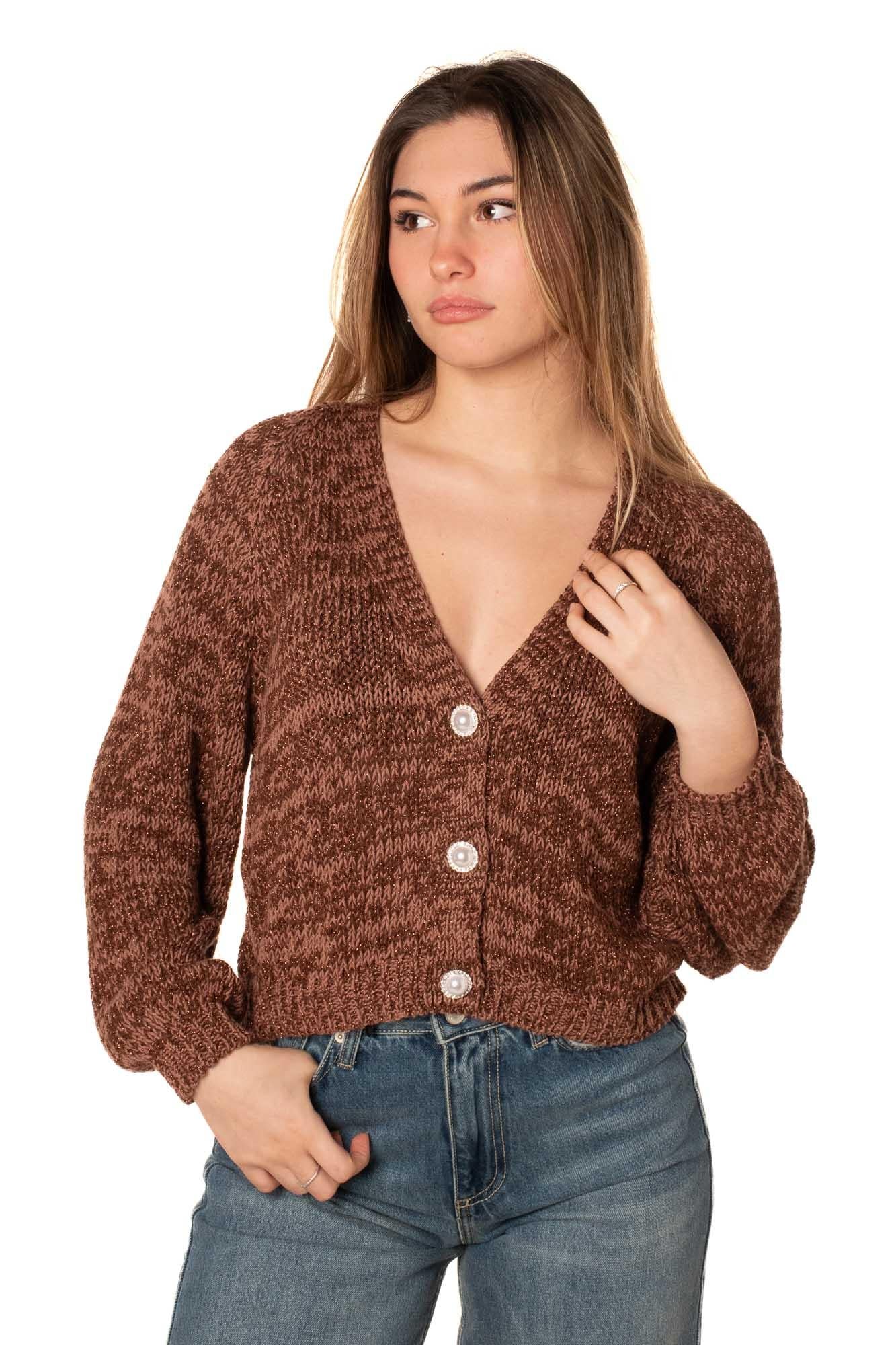 Cardigan da donna con 3 bottoni. Oversize fit. La modella è alta 170. Taglia Unica.