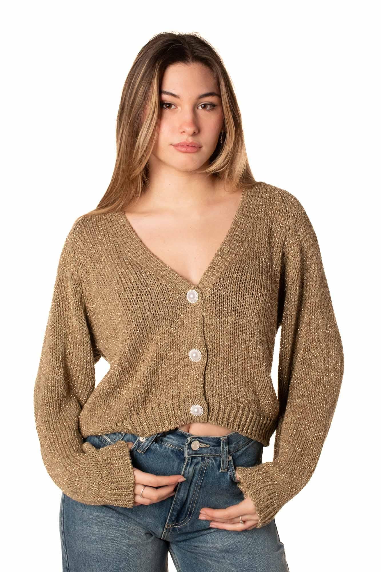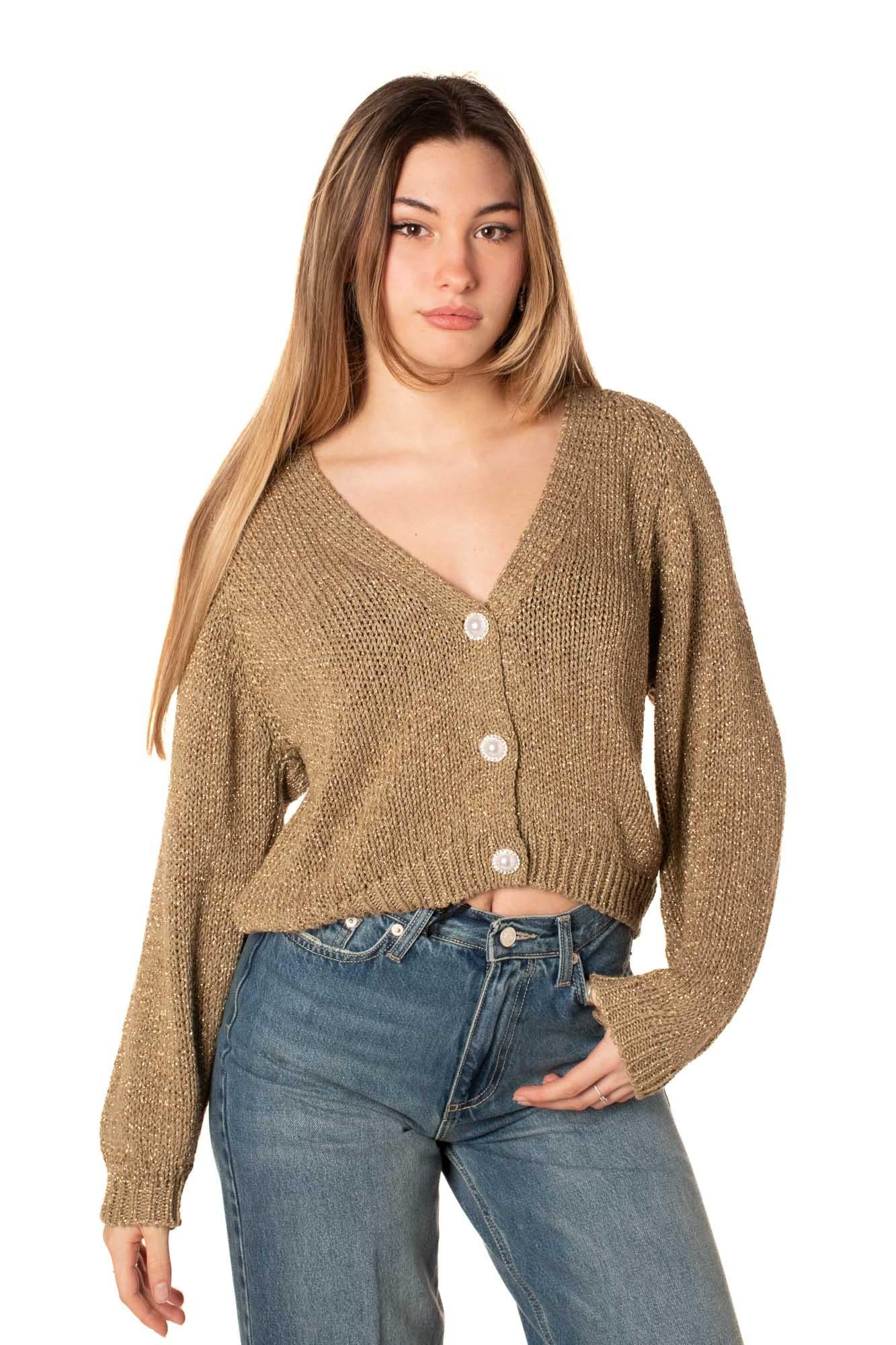 Cardigan da donna con 3 bottoni. Oversize fit. La modella è alta 170. Taglia Unica.