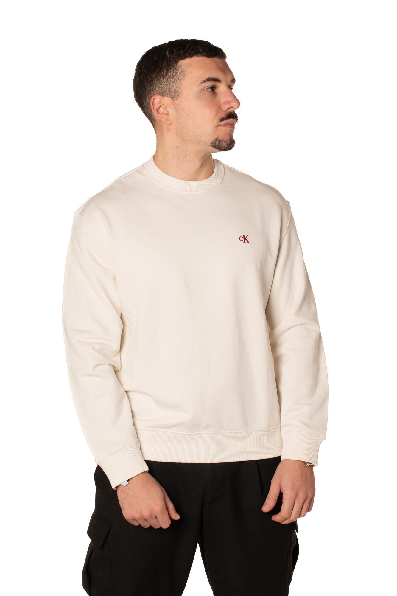 Felpa in cotone girocollo da uomo, con logo ricamato sul petto. Relaxed fit. Il modello è alto 183 cm e indossa la taglia L.