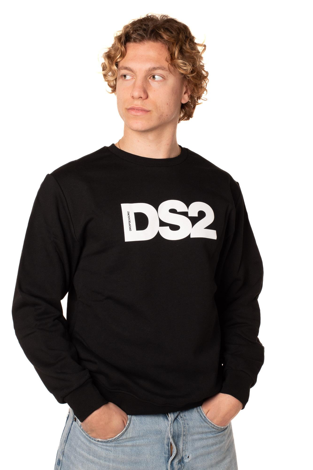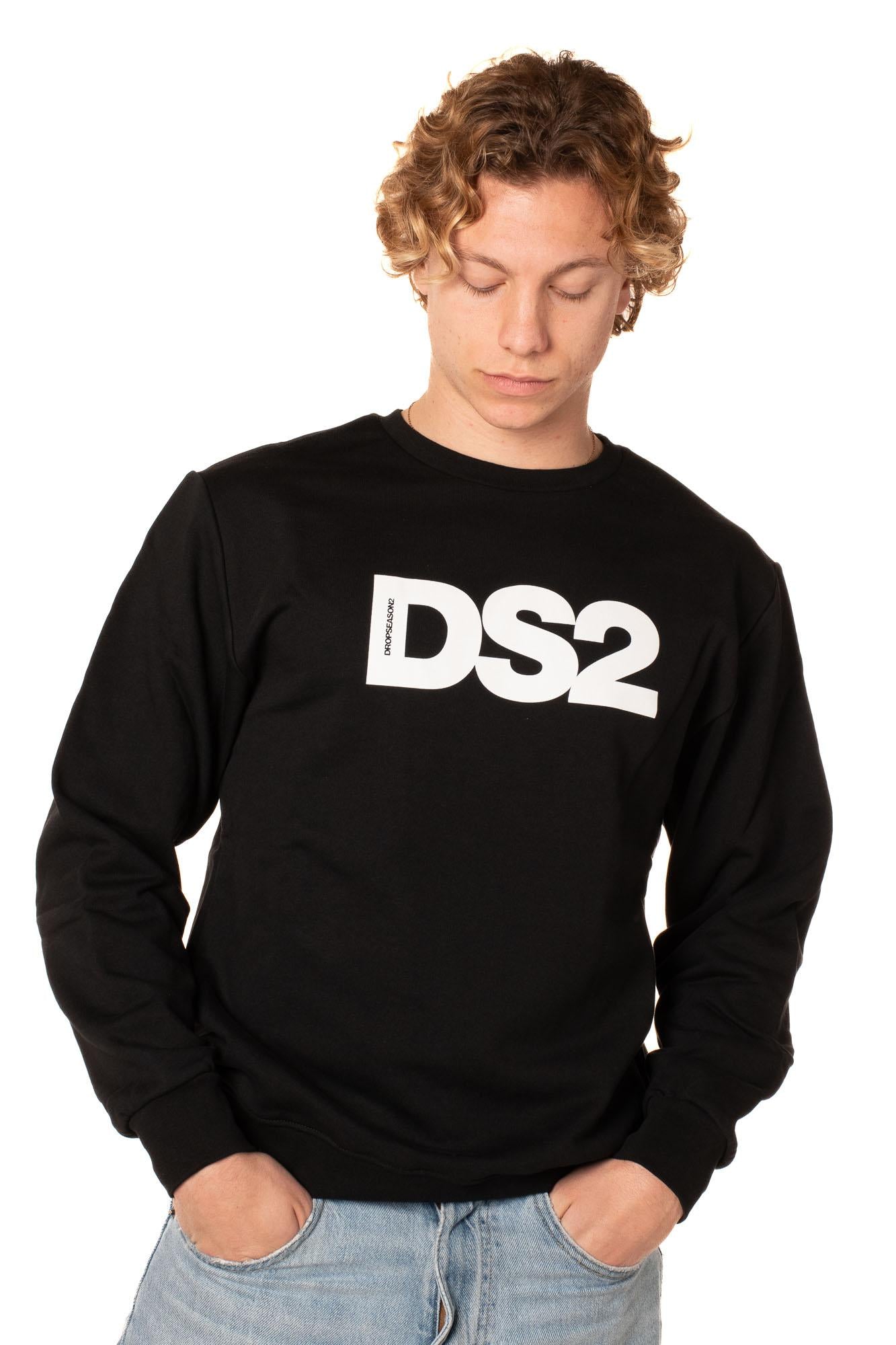Felpa girocollo da uomo in 100% cotone da uomo, regular fit. Stampa serigrafica. Il modello è alto 183 cm e indossa la taglia M.