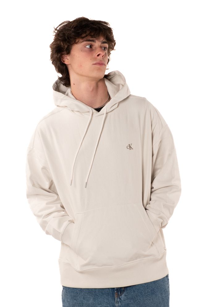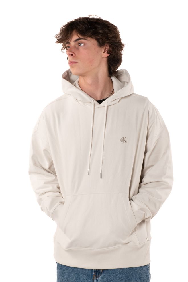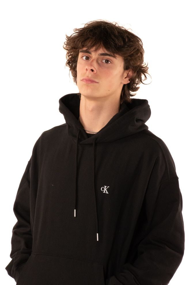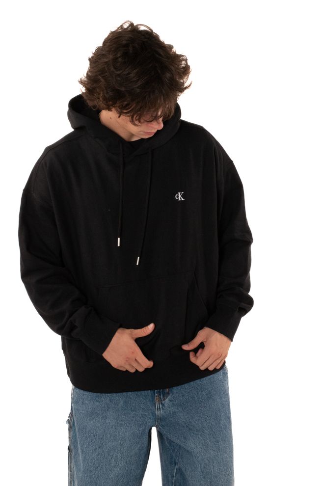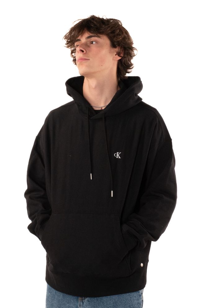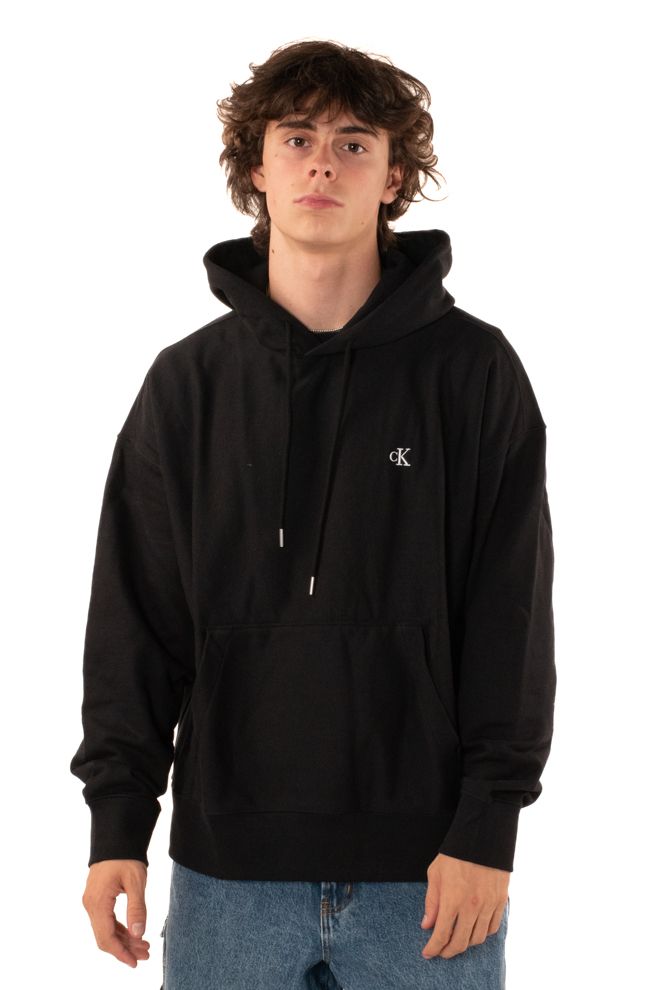 Felpa con cappuccio da uomo con tessuto in french terry, relaxed fit. Il modello è alto 180 cm e indossa la taglia M.