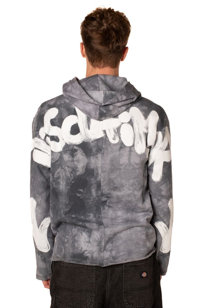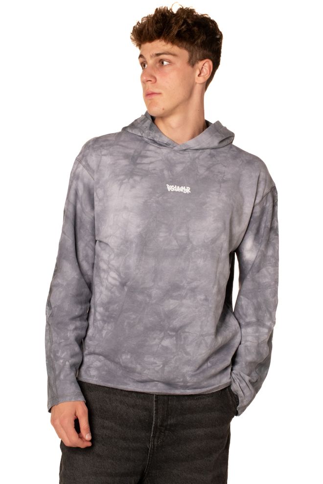 Felpa con cappuccio tiedye da uomo, loghino sul petto e biglogo sulla schiena. Fondo e polsini aperti. Il modello è alto 184 cm e indossa la taglia M.