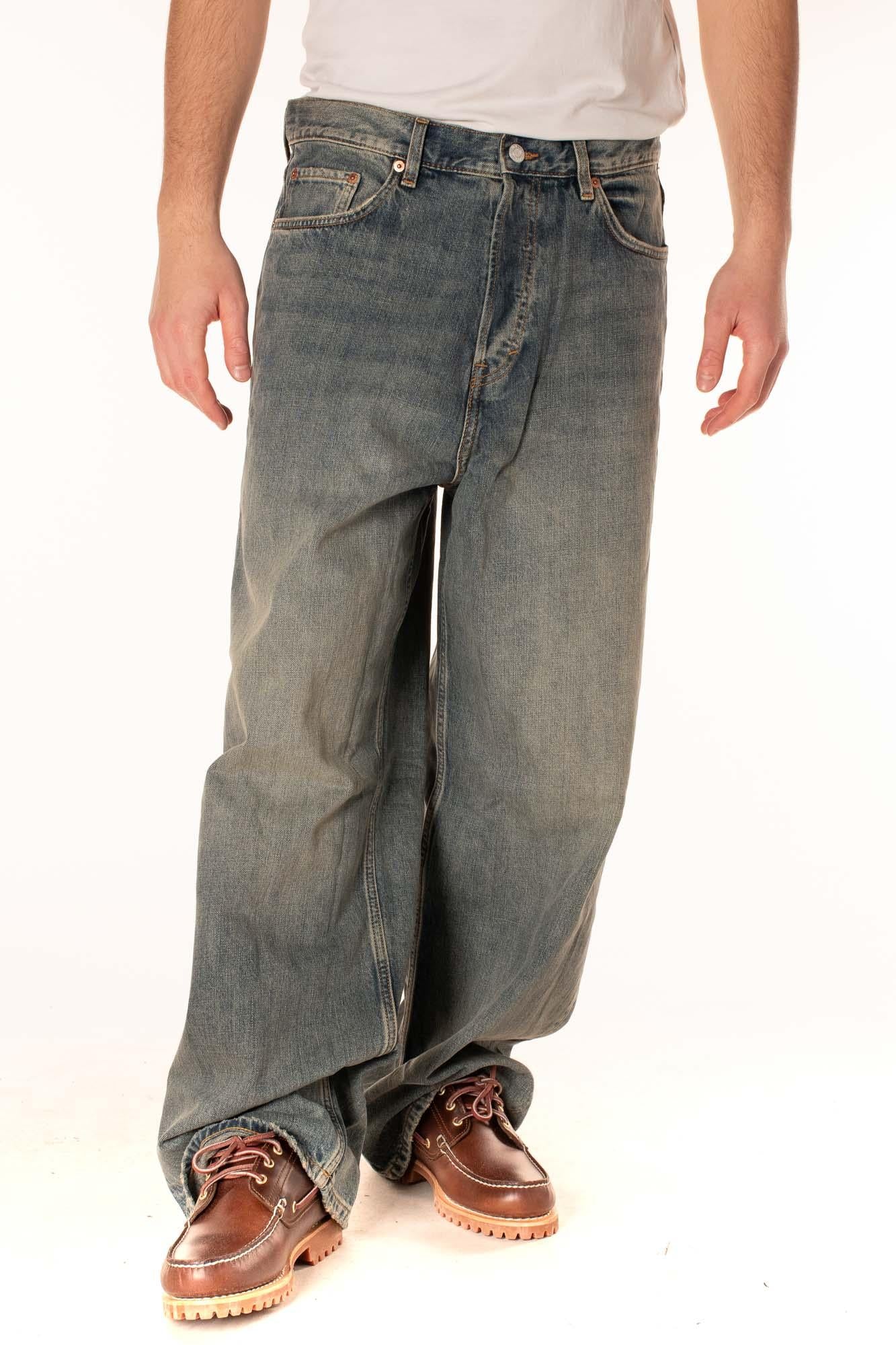 Jeans oversize baggy. Fit oversize. 5 tasche. Il modello è alto 185 cm e indossa la taglia 32.