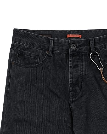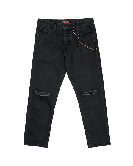 Jeans cinque tasche carrot fit realizzato in morbido cotone con strappi sulle ginocchia, vita con passanti, chiusura con bottoni, etichetta logo posteriore, catena amovibile.