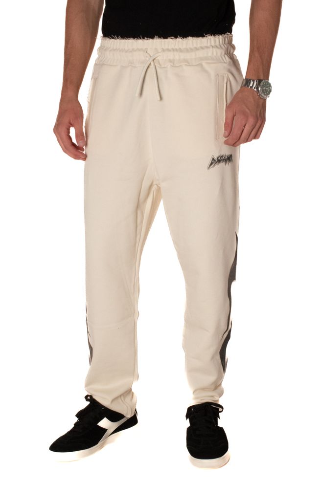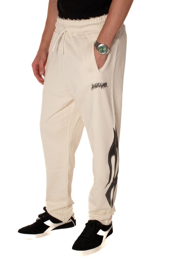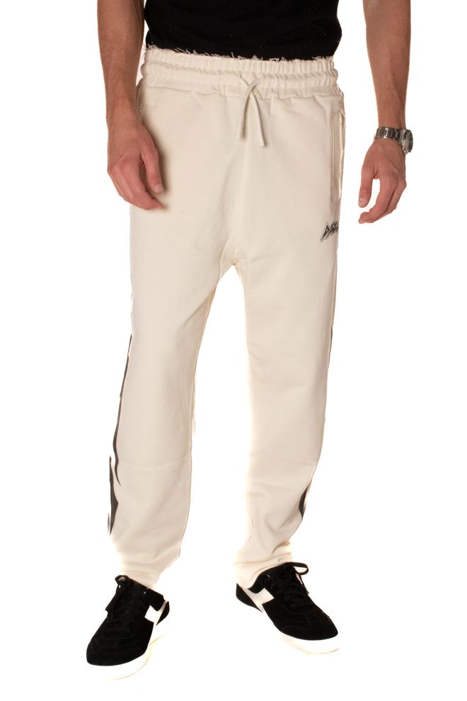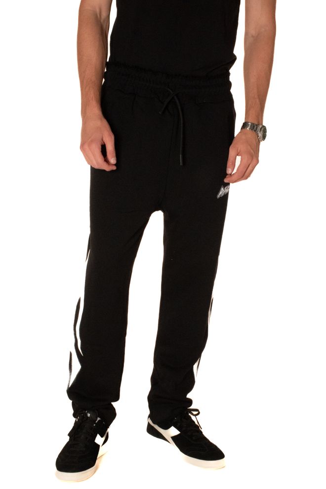Jogger da uomo con stampe serigrafiche e loghino sotto alla tasca. Relaxed Fit. Il modello è alto 184 cm e indossa la taglia M.