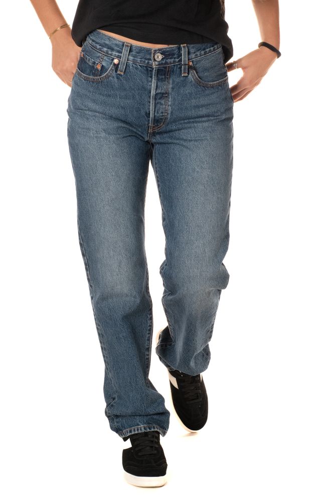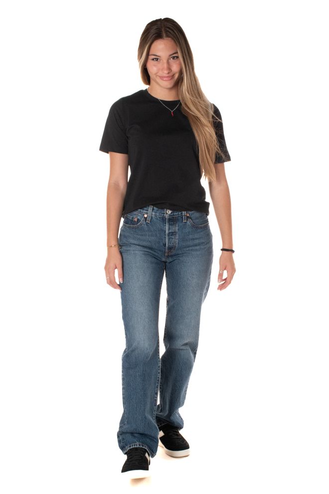 Jeans da donna 5 tasche, straight fit. La modella è alta 170 cm e indossa la taglia 27.