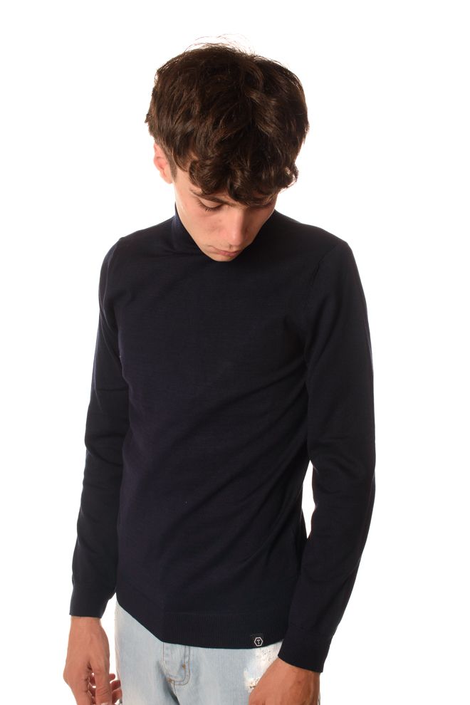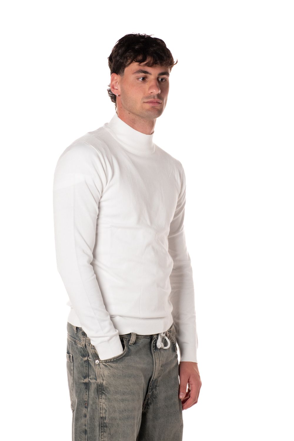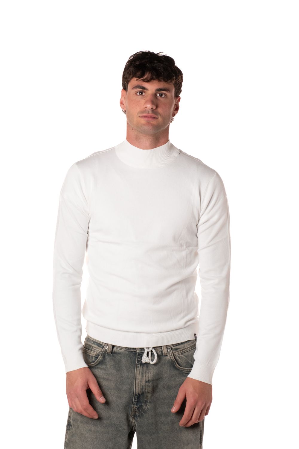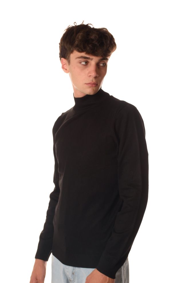 Pullover mezzo collo in misto viscosa con bordi rifiniti a costine. Il modello è alto 180 cm e indossa la taglia M.