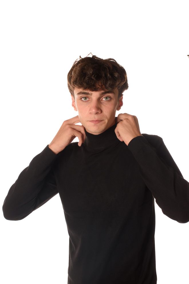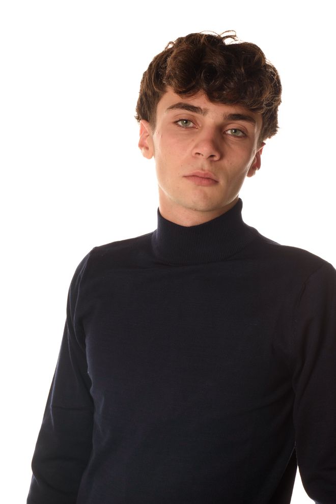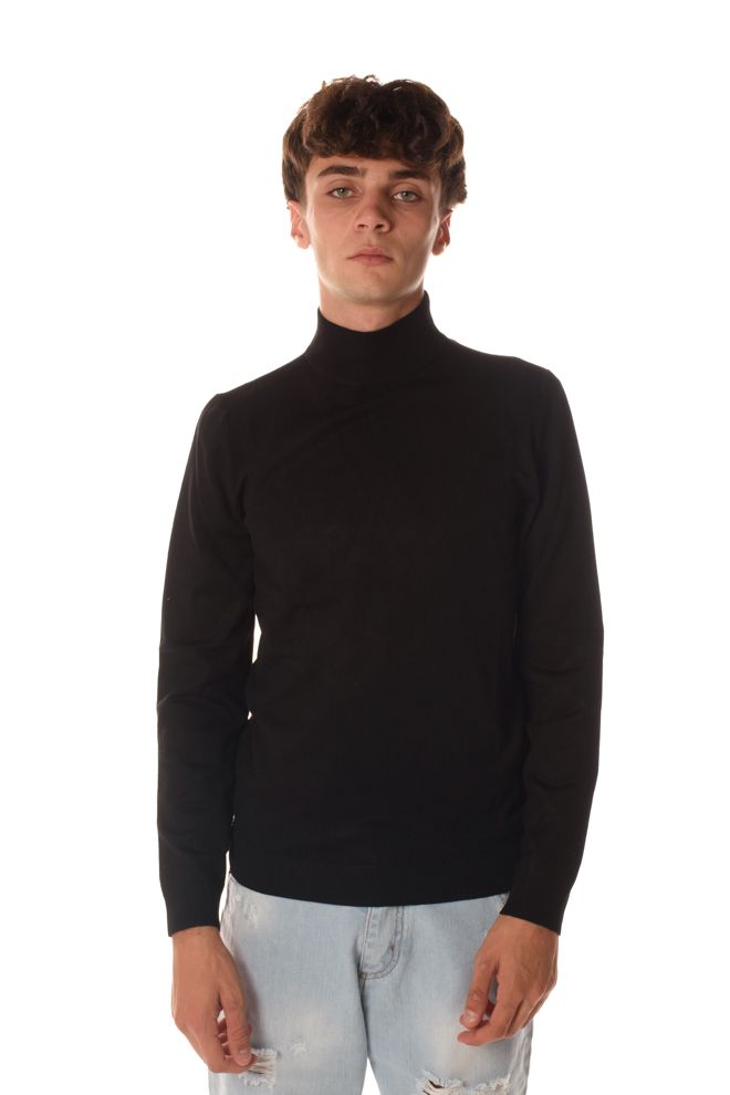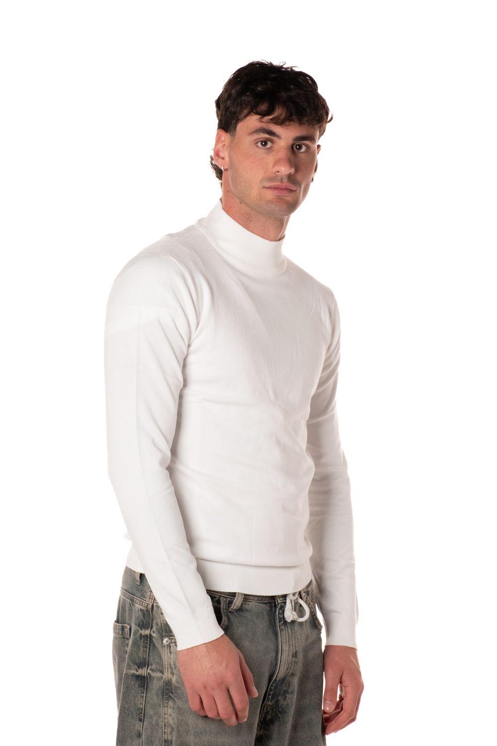 Pullover mezzo collo in misto viscosa con bordi rifiniti a costine. Il modello è alto 180 cm e indossa la taglia M.