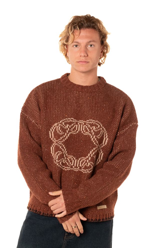 Maglione da uomo con logo legacy serigrafico. Fit Oversize. Patch ricamata sul fianco. Il modello è alto 183 cm e indossa la taglia M.