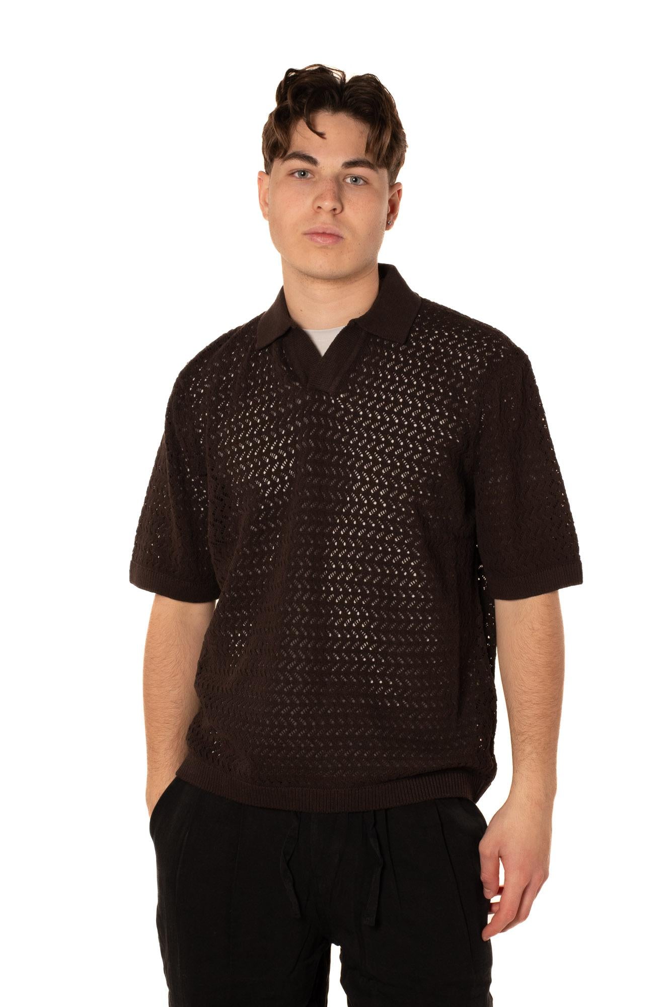 Polo in maglia traforata in cotone da uomo. Regular Fit. Scollo a V sul petto. Il modello è alto 183 cm e indossa la taglia L.