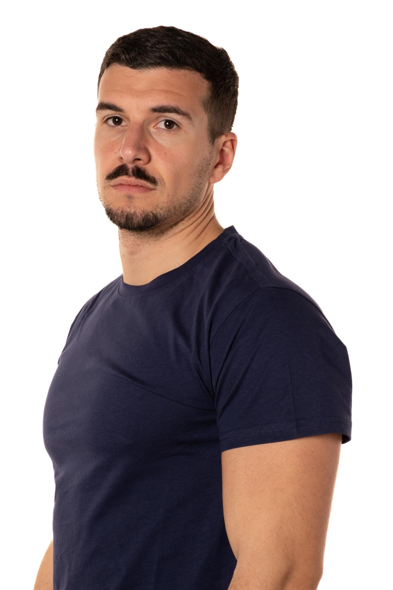 Tshirt in cotone basica da uomo. Regular Fit. Il modello è alto 183 cm e indosa la taglia L.
