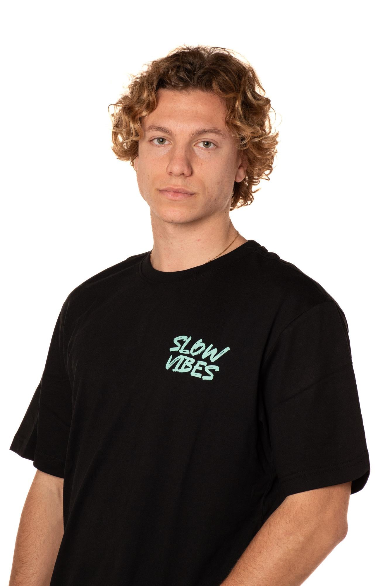 Tshirt da uomo con stampa sul petto e posteriore. Relaxed fit. 100% cotone. Il modello è alto 183 cm e indossa la taglia M.