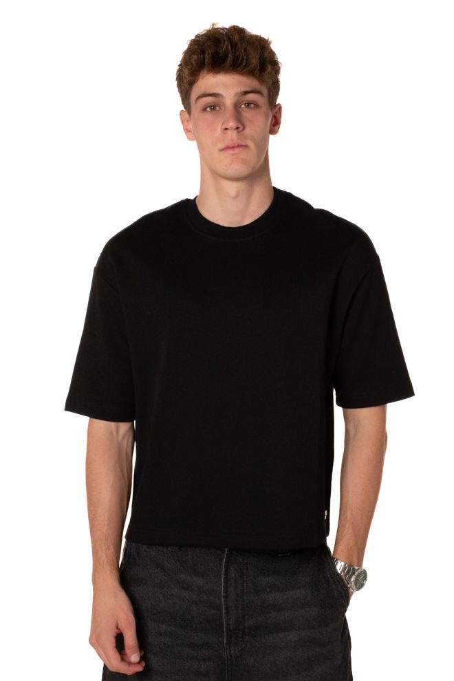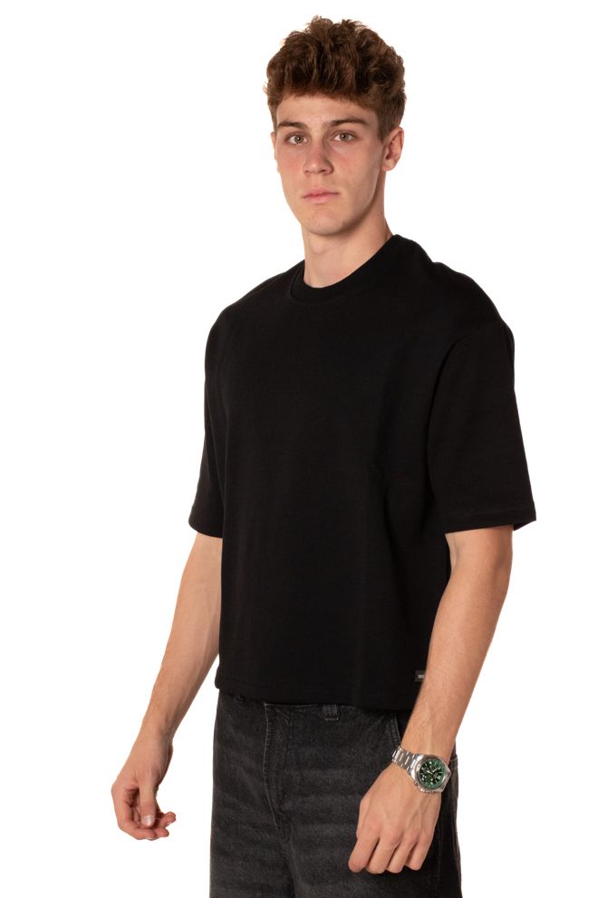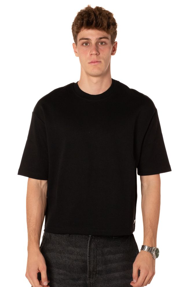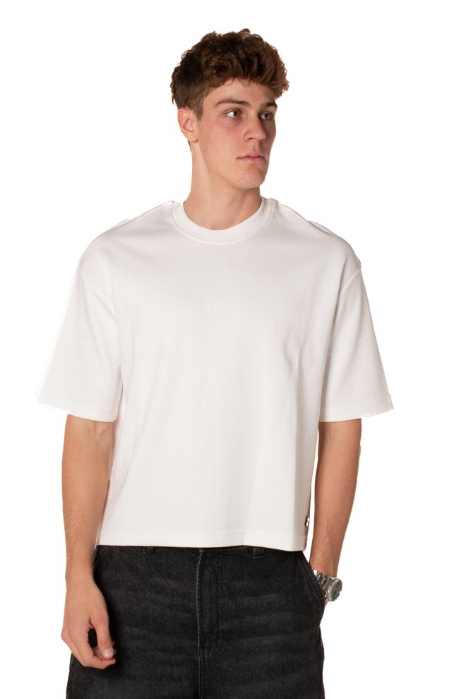 Tshirt in cotone pesante da uomo boxy fit. Fit oversize. Il modello è alto 184 cm e indossa la taglia M.