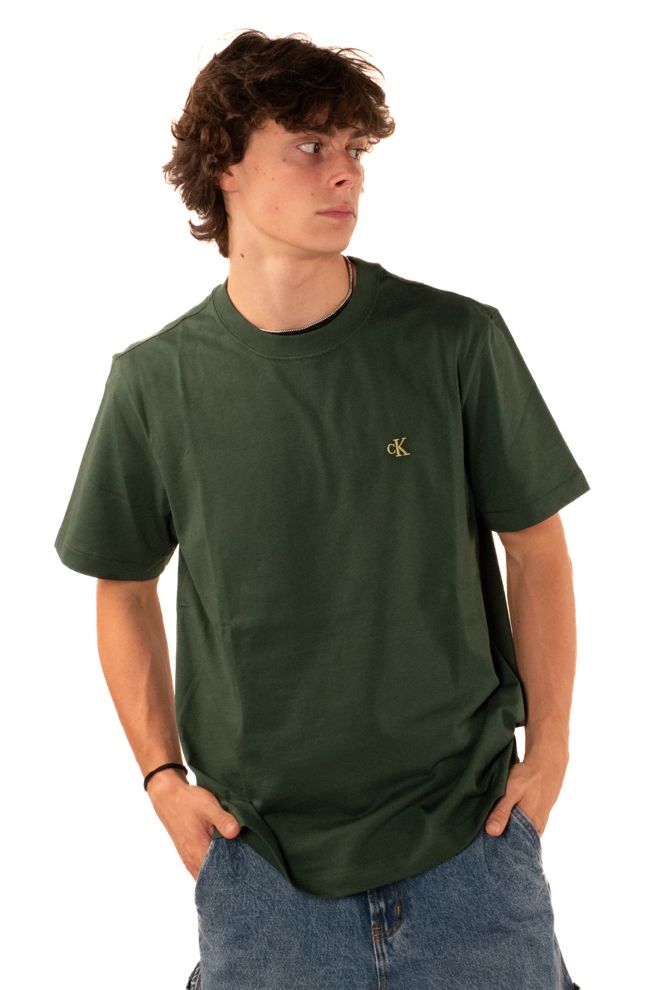 Tshirt da uomo in cotone con loghino ricamato sul petto. 100% cotone regular fit. Il modello è alto 180 cm e indossa la taglia M.