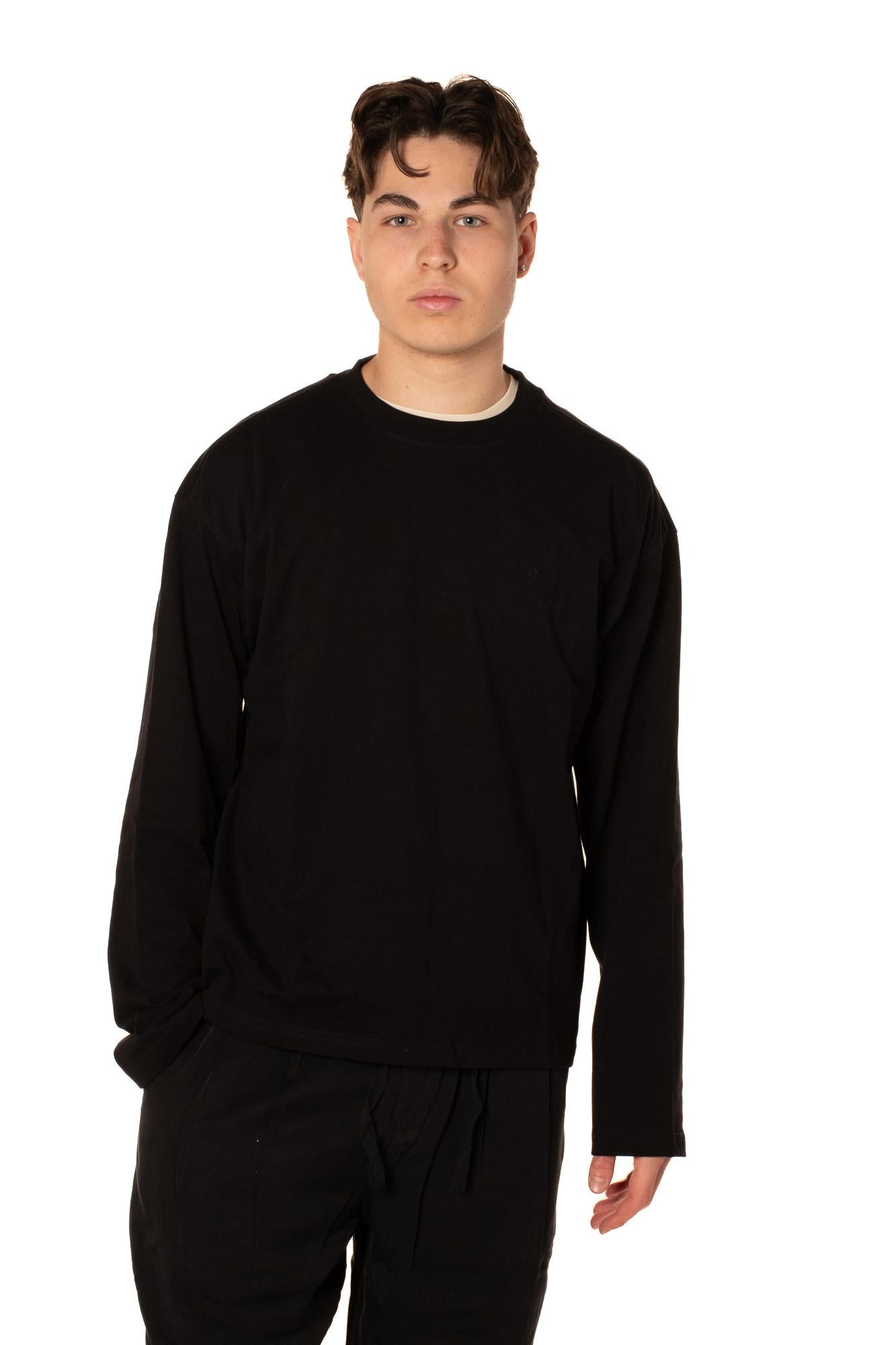 Tshirt in cotone a manica lunga, loose fit. Il modello è alto 185 cm e indossa la taglia M.